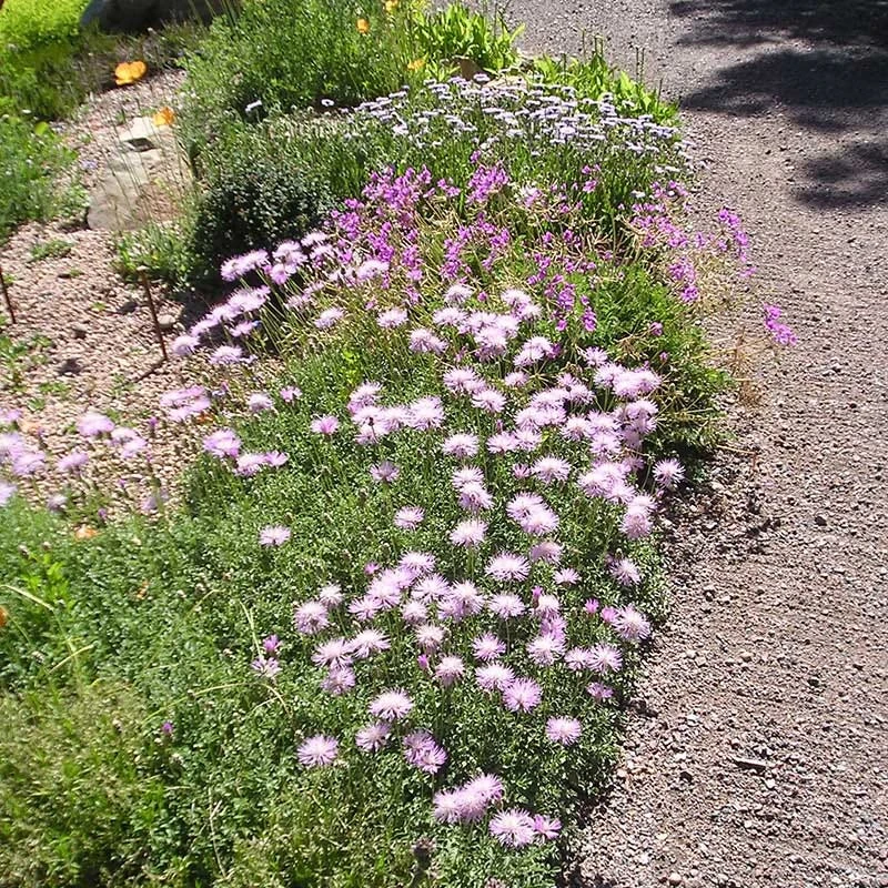 • Psephellus simplicicaulis or Centaurea simplicicaulis ‘Bellina’ (Pink Cornflower) is a well-behaved, small-scale groundcover that has been grown by rock gardeners in the Intermountain West region for decades