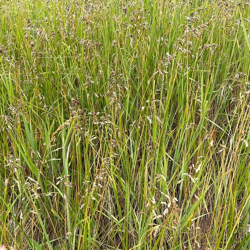 Known for its vanilla fragrance, Hierochloe odorata (Sweetgrass) is considered sacred by many indigenous people in North America, and is burned in ceremony; it is used as a smudge and in herbal medicine. The grass may be harvested twice a year and dried, and it will hold its fragrance for a long time. The sweet scent lies in its foliage and seeds and is stronger when the plant is dried. Traditionally used in basket making and for smudges. Birds are attracted to the seeds and a walk through sweetgrass is said to have a calming effect. Sweetgrass is found naturally in wetlands, prairies, and savannas with medium-wet soils, so it requires rich moist soil and at least 6 hours of sun a day. In the right conditions, this grass spreads vigorously by rhizomes, so it will blend with other grasses or perennials in a garden, or it can be planted in masses for a striking effect. Plant where it can spread naturally, as it can be difficult to remove once it becomes established. It may also be used for erosion control in moist, sunny areas.
